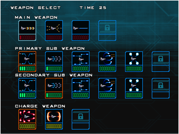 Shoot’em ups live and die by their ability to get the player’s thumb off of the shoot button. You’ll simply lose interest if taping your thumb to your controller wins the day. Shooters are about split second decisions and the skill to execute. Having multiple options tied to different buttons makes you feel like you’re actually piloting a sophisticated murder ship. Satazius offers 12 weapons to choose from the start. In addition to a main shoot button, you can cycle between two subs with a second button, and use a third button for a charge weapon that acts as your ace in the hole. You’ll eventually collect 19 weapons total as new weapons unlock after boss battles.